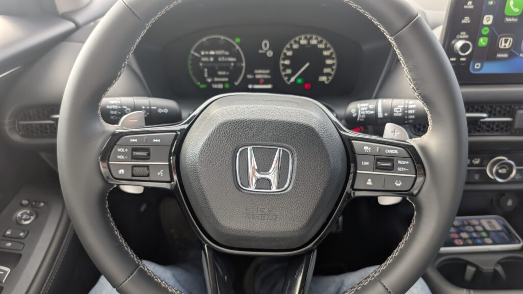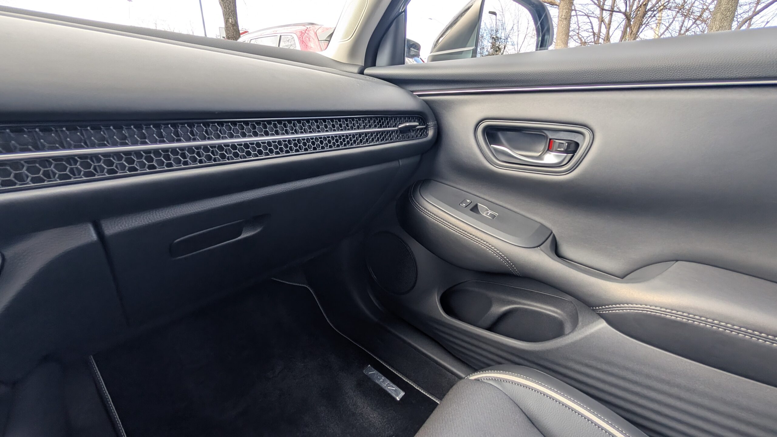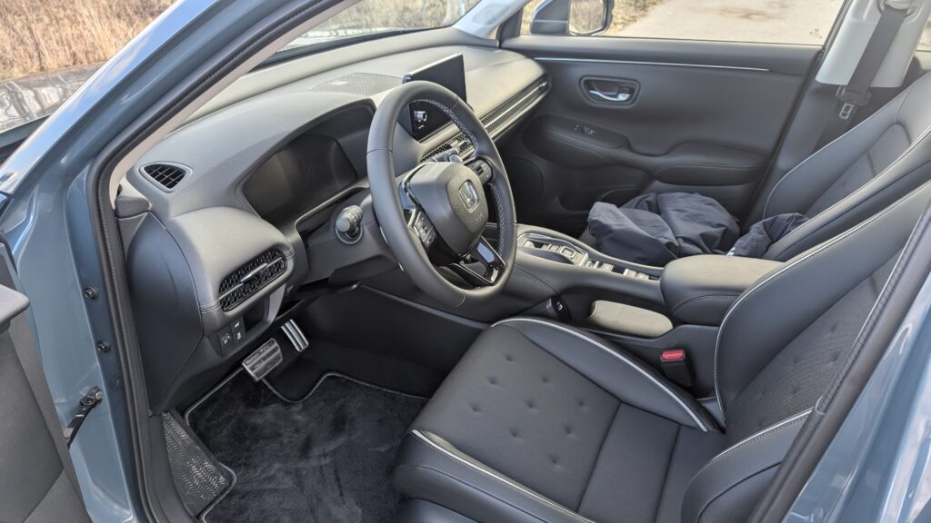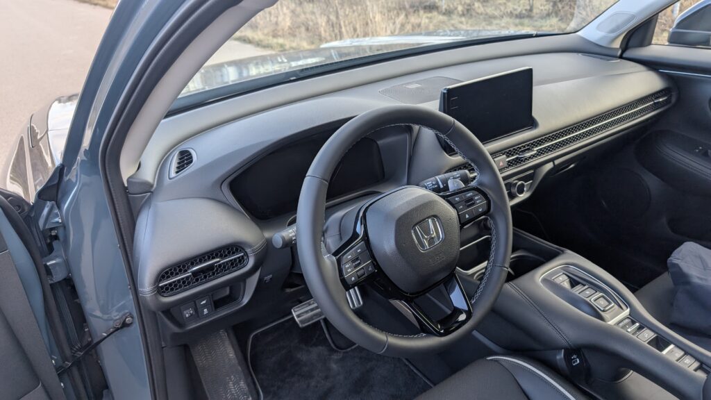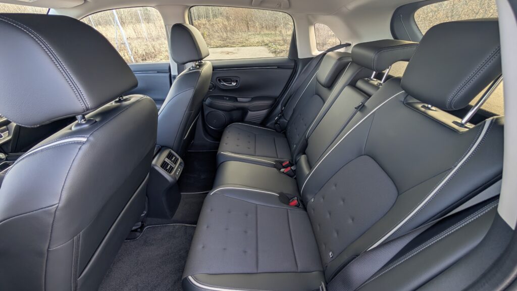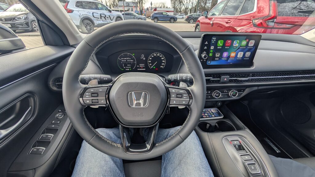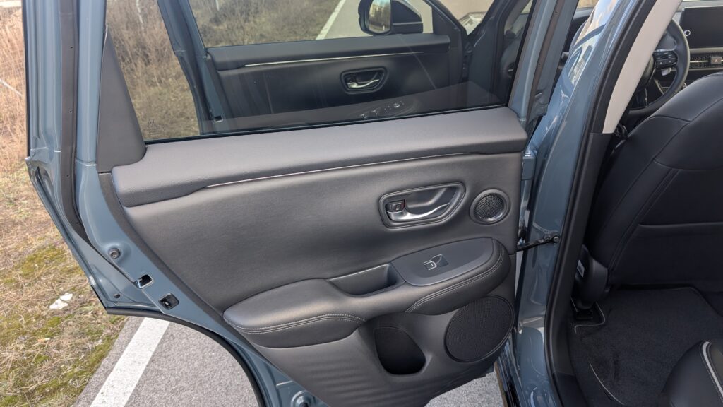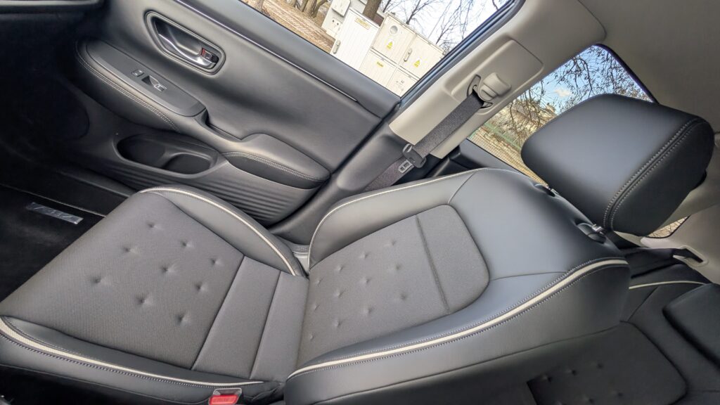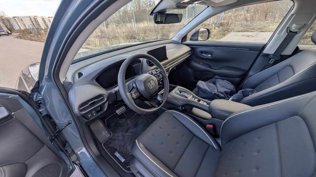Komfort i ogólny wygląd całej kabiny stoją na wyjątkowo wysokim poziomie, dystansując model ZR-V od mniejszego HR-V, w którym przy wyższych prędkościach odczuwalny był hałas. Tutaj kabina jest znakomicie wyciszona, bardzo przestronna i zapewnia mnóstwo miejsca zarówno dla pasażerów z przodu, jak i osób podróżujących na tylnej kanapie. Honda położyła ogromny nacisk na materiały, dzięki czemu właściwie z każdej strony otaczają nas miękkie i aksamitne w dotyku powierzchnie. Deska rozdzielcza została pokryta eleganckim materiałem przypominającym ekoskórę z miękkim, piankowym podkładem, dzięki czemu wyeliminowano twarde i nieprzyjemne plastiki. Identyczne, wysokiej jakości wykończenie znalazło się na boczkach drzwi oraz na konsoli środkowej, na której opieramy kolana podczas jazdy. Fotele w wersji Sport są niezwykle wygodne i zostały pieczołowicie wyściełane interesującą mieszanką wytrzymałego materiału oraz wysokiej jakości skóry syntetycznej, co zapewnia świetne trzymanie boczne i komfort nawet podczas kilkugodzinnej trasy.