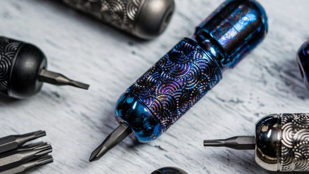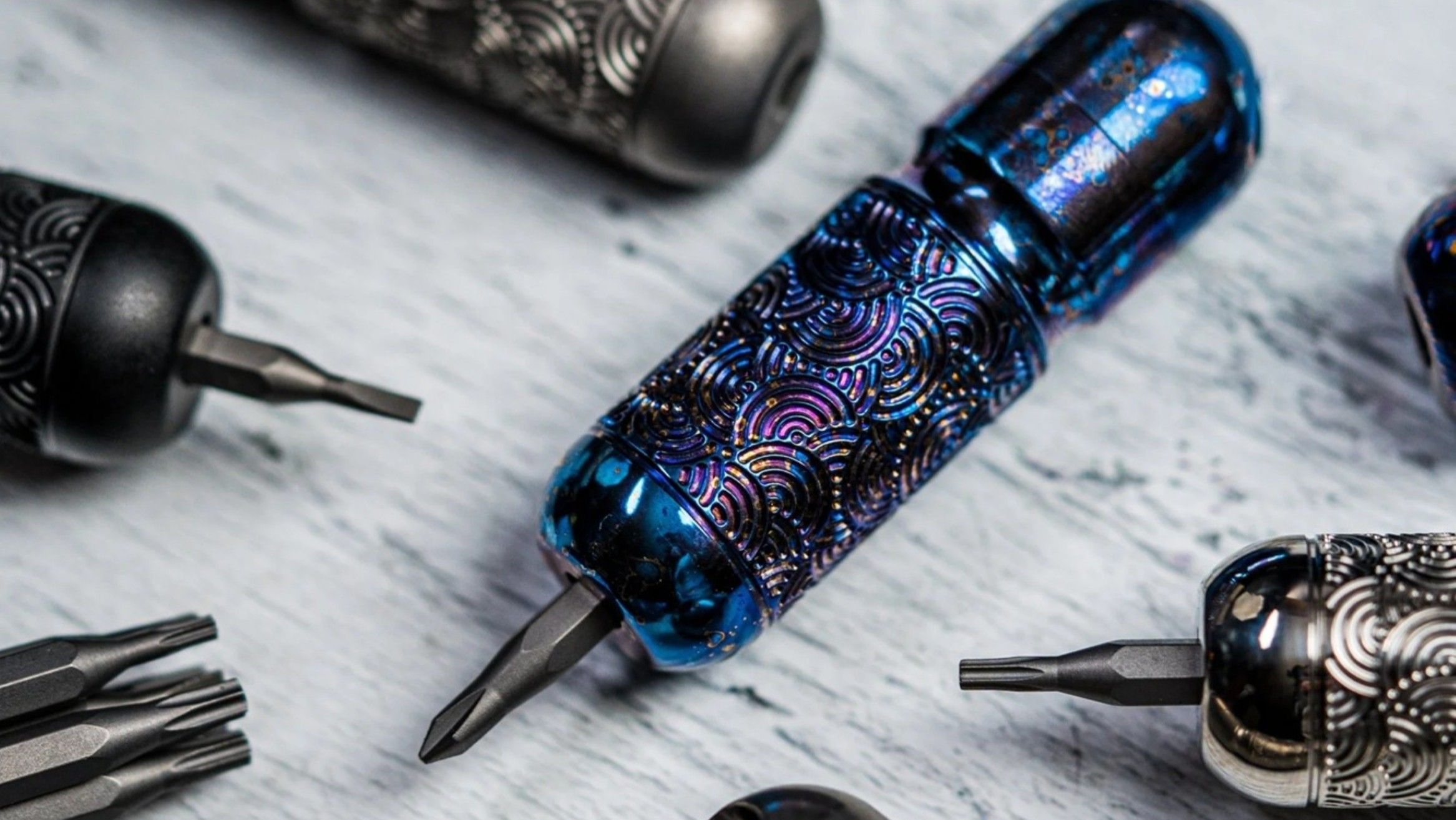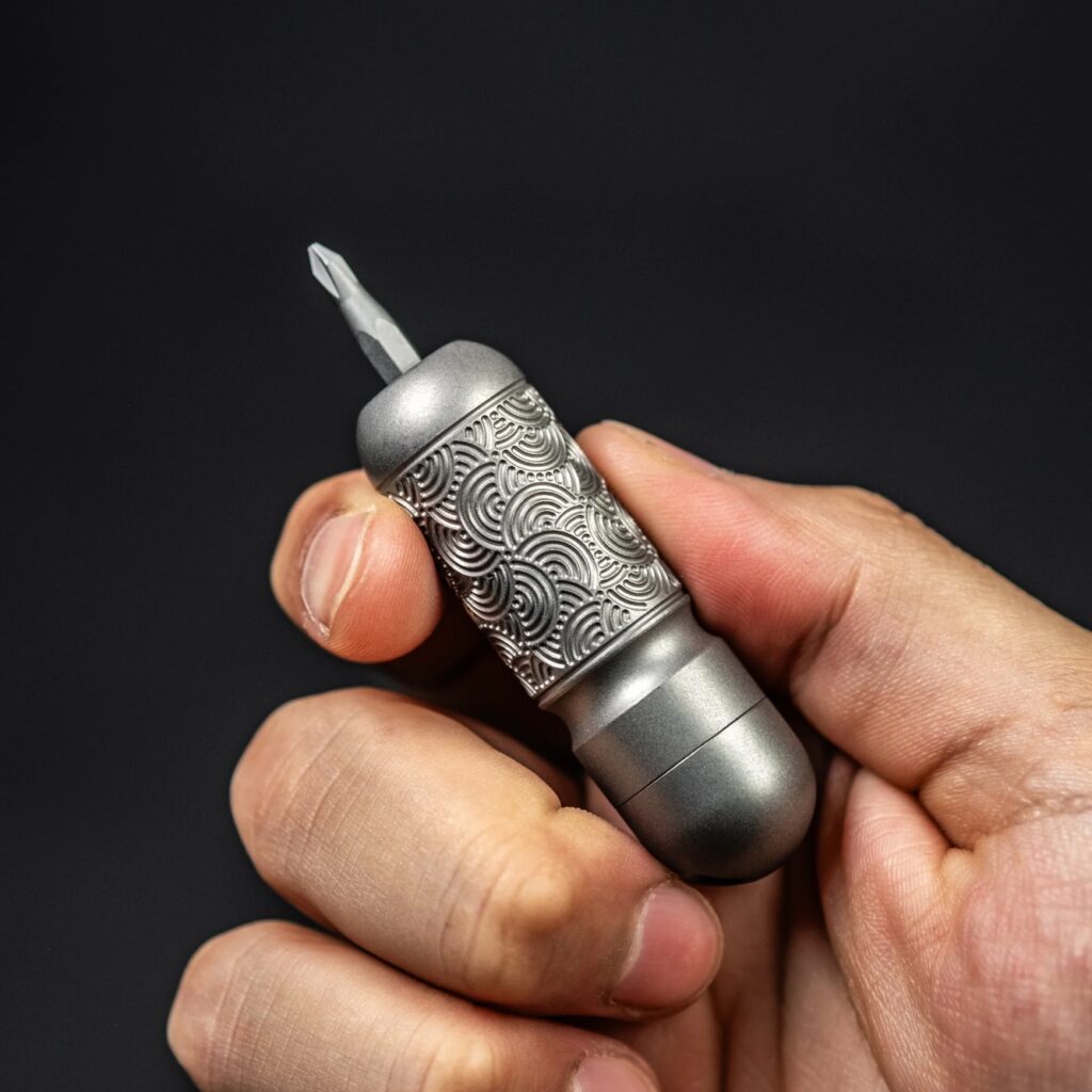 Ten niezwykły projekt to dowód na to, że precyzyjna inżynieria może iść w parze z artystyczną innowacją, a funkcjonalność i piękno mogą tworzyć bezkompromisową całość. Ekskluzywna współpraca z marką URBAN wynosi skromny wkrętak na zupełnie nowy poziom. Już na pierwszy rzut oka narzędzie zachwyca wyglądem. Jego obudowa w kształcie kompaktowej kapsułki została ozdobiona hipnotyzującym japońskim wzorem fali „Chaos Seigaiha”, który zdaje się dynamicznie poruszać po powierzchni. Ten zabieg ma podwójne znaczenie – nie tylko dodaje artystycznego charakteru, ale także poprawia pewność chwytu. Całość wykonano z tytanu obrabianego metodą CNC, co gwarantuje lekkość, niezwykłą wytrzymałość i trwałość.