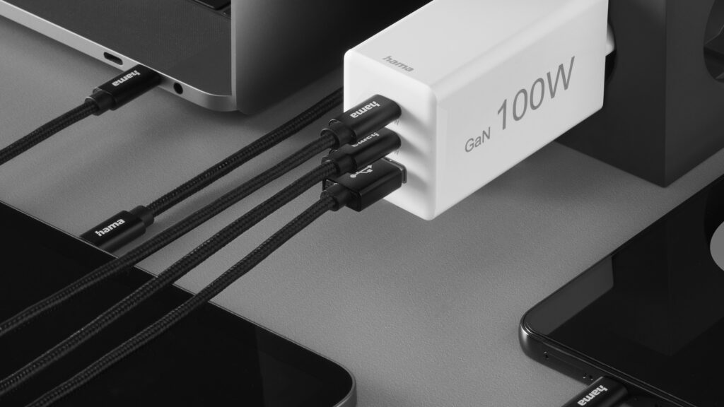 Podróżujemy razem z ulubioną ekipą lub całą rodziną z laptopem, tabletem i smartfonami, a w pokoju hotelowym nie ma wystarczająco wielu gniazdek? Atmosfera robi się przez to gorąca i niekoniecznie chodzi o aurę? Tutaj z pomocą przychodzi ładowarka sieciowa Hama Mini GaN 100 W – mała, ale piekielnie wydajna. Dzięki trzem gniazdom (2x USB-C, każde obsługujące 100 W mocy i 1x USB-A, odpowiedzialne za ładowanie z mocą 18 W) szybko „przywrócimy do życia” naraz laptop, smartfon i przenośną konsolę.
