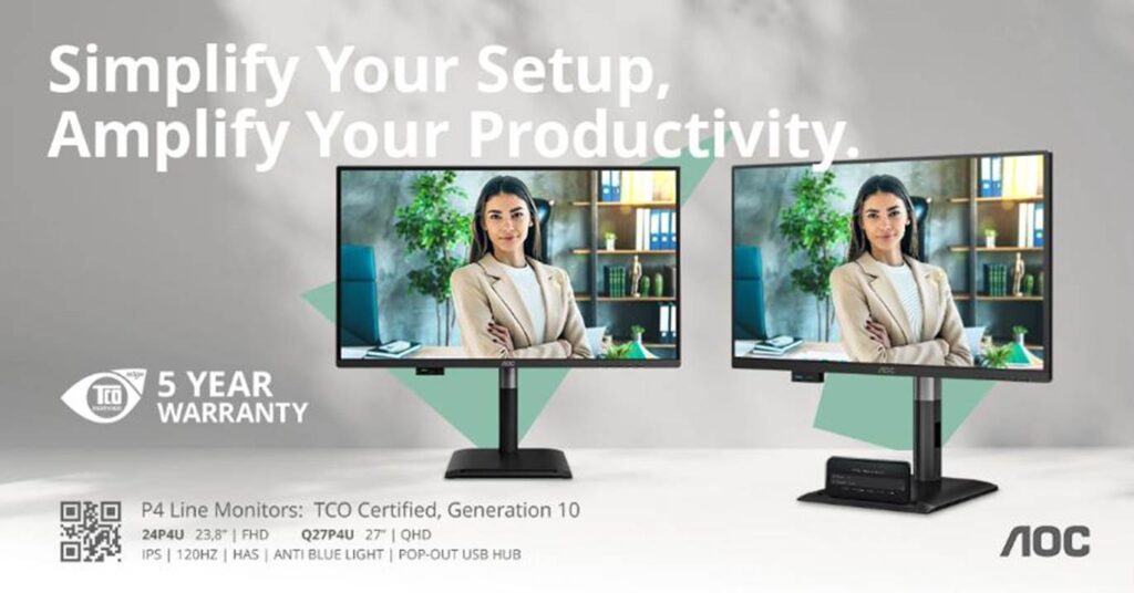 Marka AOC rozszerza ofertę monitorów biznesowych o linię P4. Dodatkowo wyświetlacze zostały wyposażone w umiejscowiony na froncie, wysuwany hub USB ze złączem typu C oraz A.