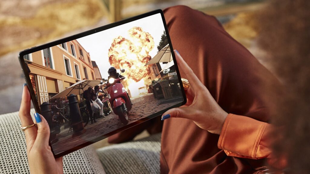 Lenovo Tab Plus to propozycja dla miłośników muzyki i kinowego brzmienia. Tablet w przystępnej cenie oferuje aż osiem głośników JBL Hi-Fi z Dolby Atmos®, które tworzą głęboki, przestrzenny dźwięk. Dodatkowo urządzenie oferuje 11,5-calowy ekran 2K z odświeżaniem 90 Hz i certyfikatem TÜV, a także mocny procesor MediaTek Helio G99, 8 GB RAM i baterię o pojemności 8600 mAh .