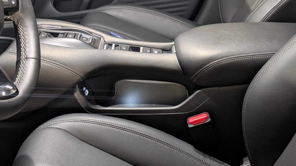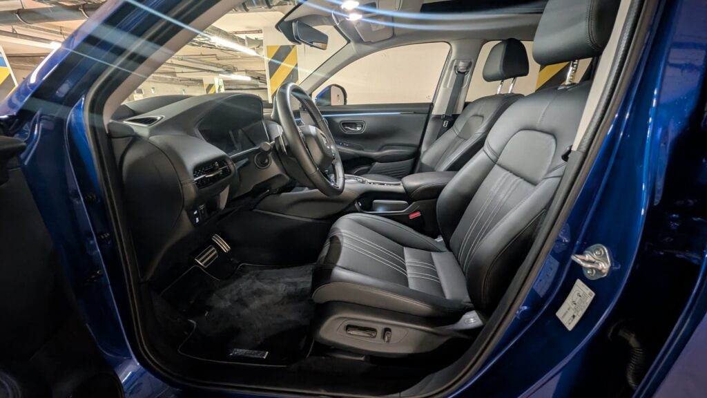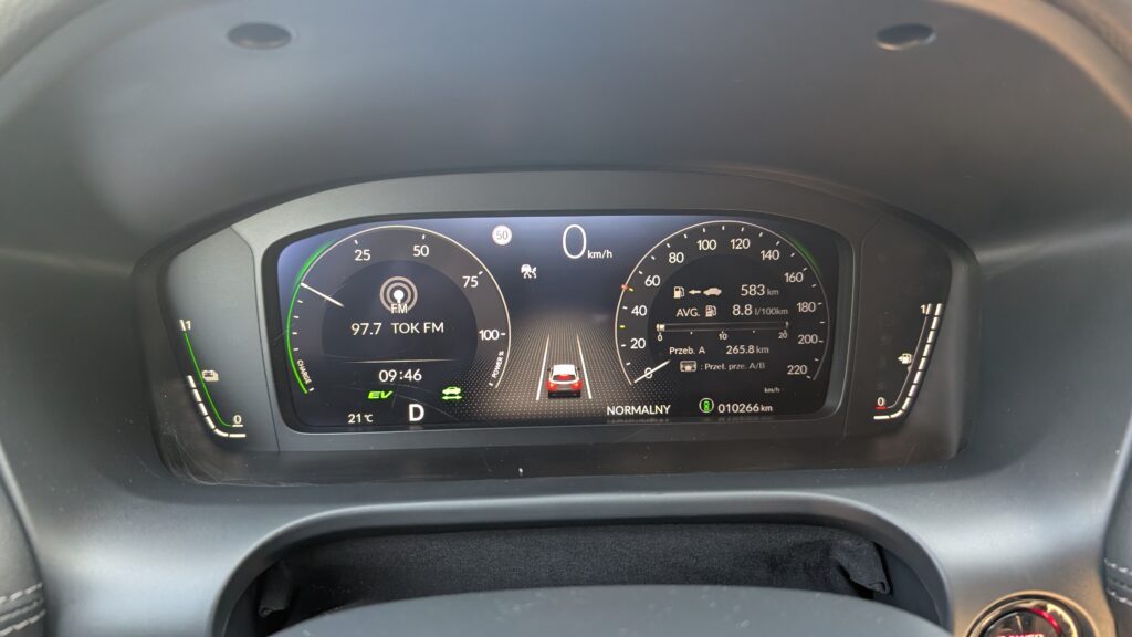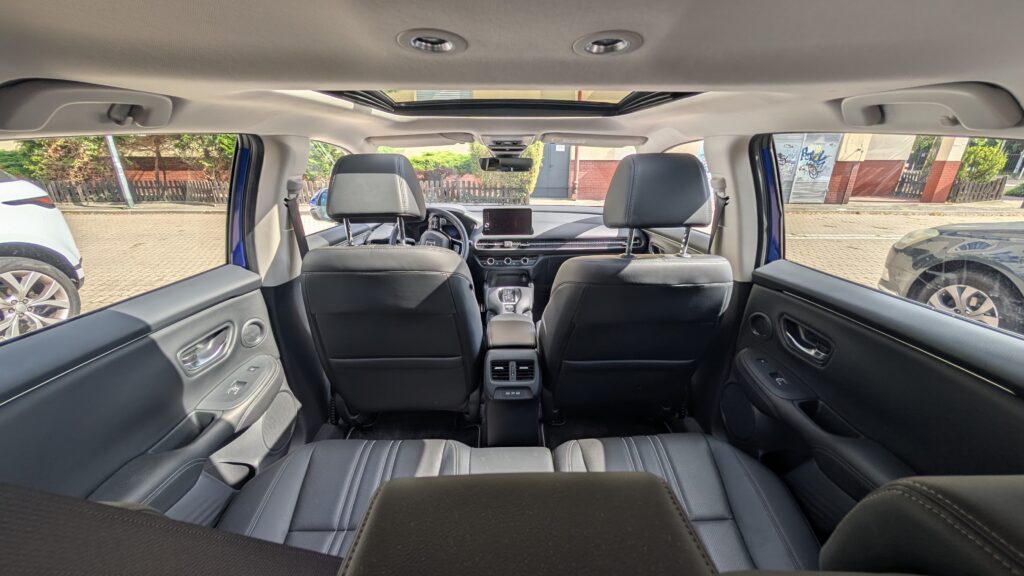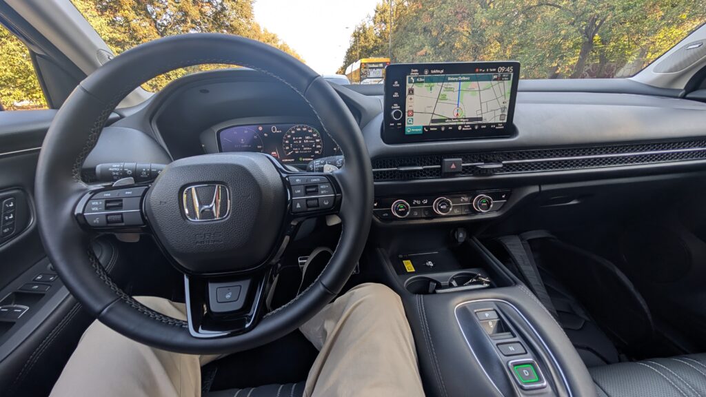 Wnętrze Hondy ZR-V to połączenie wysokiej jakości materiałów, doskonałego montażu i przemyślanej ergonomii. Tapicerka, w zależności od wersji, może być materiałowa lub skórzana, a fotele są obszerne i bardzo wygodne, zapewniając świetne podparcie nawet podczas dłuższych podróży. Projekt deski rozdzielczej na pierwszy rzut oka może wydawać się nieco oldschoolowy w porównaniu z futurystycznymi kokpitami wielu nowych aut. Centralny ekran systemu informacyjno-rozrywkowego nie jest największy na rynku i otaczają go fizyczne przyciski oraz pokrętło głośności.