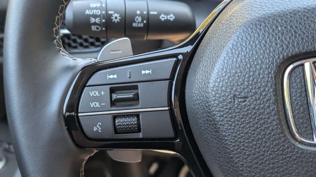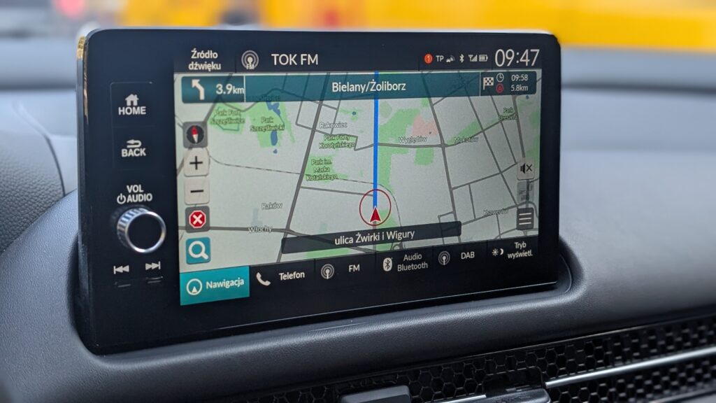 W całym kokpicie znajdziemy zaskakująco dużo analogowych pokręteł i przełączników, co jest ogromną zaletą Hondy. W dobie wszechobecnych ekranów dotykowych, nic nie cieszy bardziej niż możliwość bezwzrokowej obsługi kluczowych funkcji, takich jak klimatyzacja czy podgrzewanie foteli, podczas jazdy. To rozwiązanie jest nie tylko wygodne, ale przede wszystkim bezpieczne. Wykończenie niektórych elementów, jak na przykład charakterystyczny, ciągnący się przez całą szerokość deski rozdzielczej panel nawiewów o strukturze plastra miodu, może przywodzić na myśl modele Hondy sprzed dekady. Coś mi jednak mówi, że nowe generacje aut tej marki, na które czekamy w przyszłym roku, mogą nas zaskoczyć bardzo futurystycznym podejściem do projektowania wnętrz.