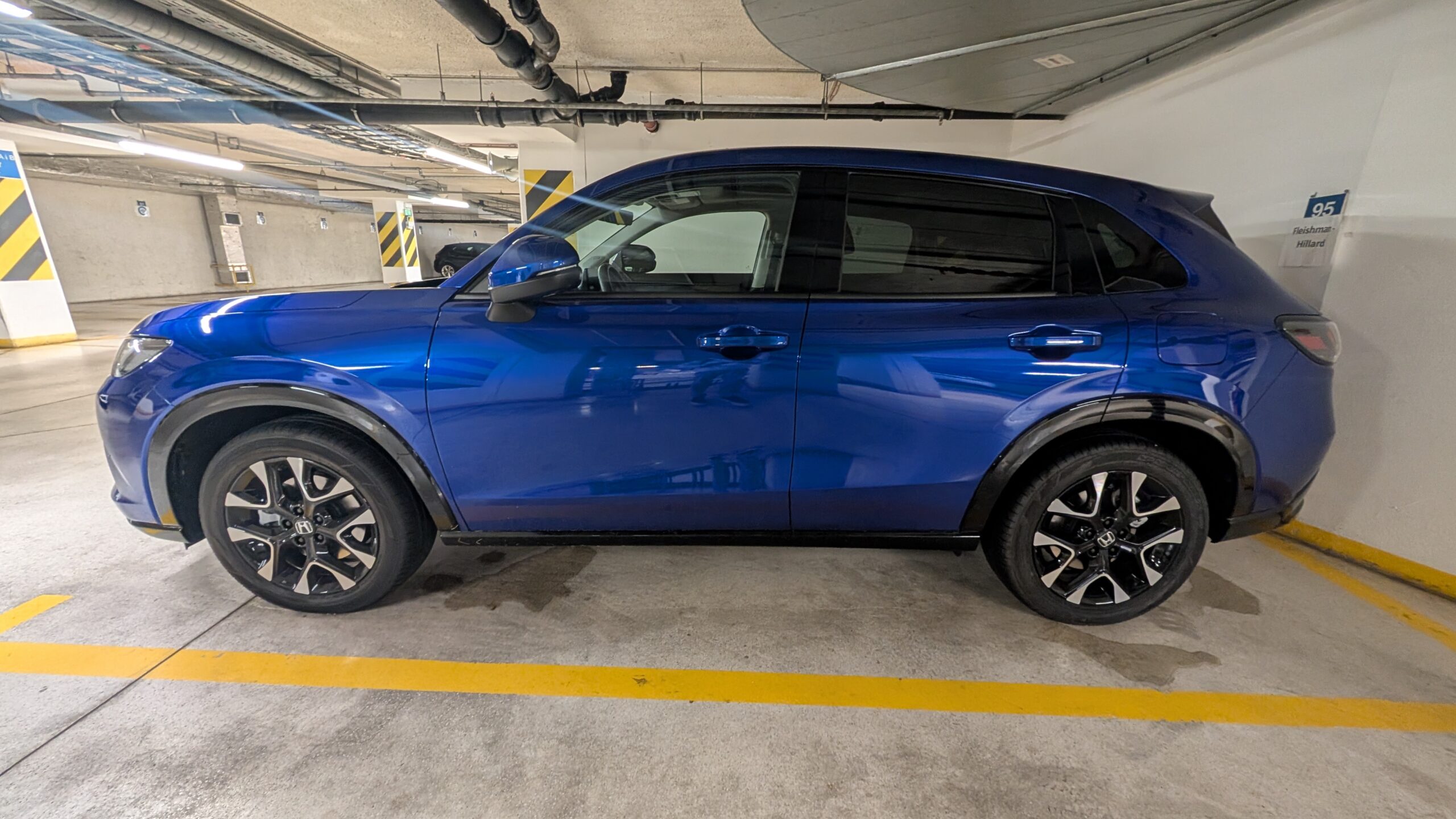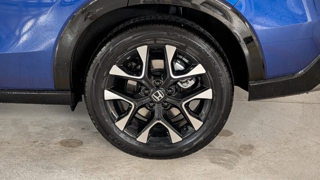 Z boku linia okien wznosi się łagodnie ku tyłowi, co w połączeniu z lekko opadającym dachem nadaje sylwetce dynamicznego kształtu. Ciekawym zabiegiem są wyraźnie zaznaczone nadkola, które podkreślają solidność konstrukcji. Tył pojazdu jest równie zachowawczy i elegancki. Szerokie, połączone subtelną listwą lampy zachodzą na boki nadwozia, a podwójne, chromowane końcówki układu wydechowego dodają sportowego sznytu. Dokładne wymiary Hondy ZR-V to: długość 4568 mm, szerokość 1840 mm, wysokość 1620 mm, a rozstaw osi wynosi 2657 mm.