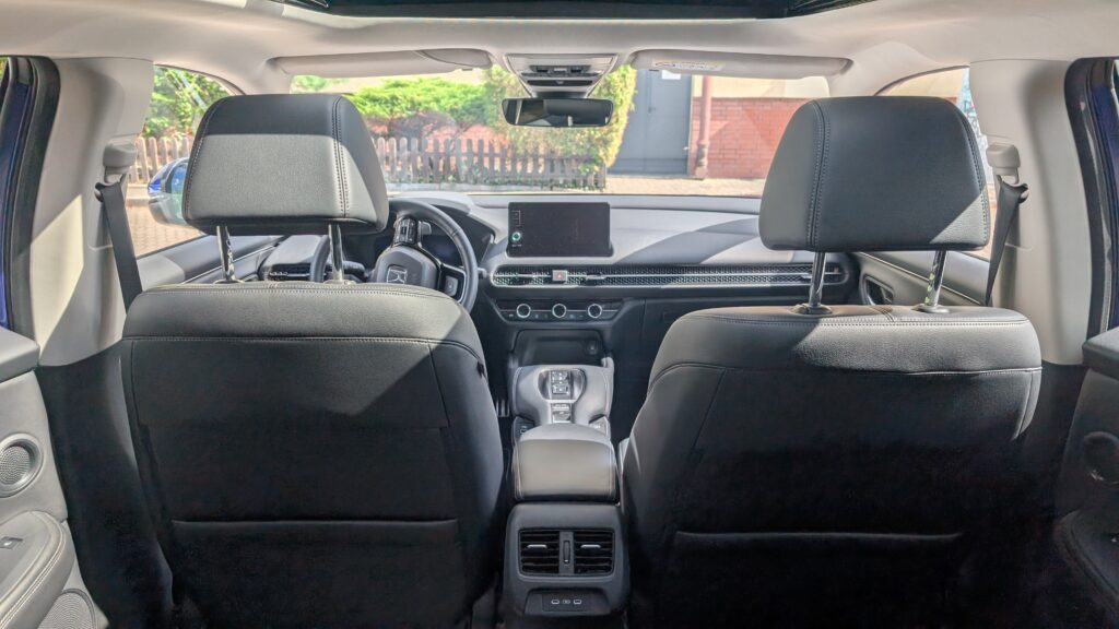 Honda ZR-V oferuje wysoki komfort podróżowania. Miejsca dla kierowcy i pasażera z przodu jest bardzo dużo, nawet dla osób o wzroście przekraczającym 190 cm. Fotele są wygodne, a pozycja za kierownicą zapewnia doskonałe pole widzenia we wszystkich kierunkach. Podobnie sytuacja wygląda na tylnej kanapie. Pasażerowie, nawet ci o wzroście powyżej 180 cm, nie będą narzekać na brak miejsca na nogi czy nad głową. Dodatkowym atutem jest płaska podłoga, która ułatwia podróż osobie siedzącej na środkowym miejscu. Pojemność bagażnika wynosi standardowo 390 litrów, co jest wartością wystarczającą na co dzień. Po złożeniu oparć tylnej kanapy przestrzeń ładunkowa wzrasta do 1322 litrów.