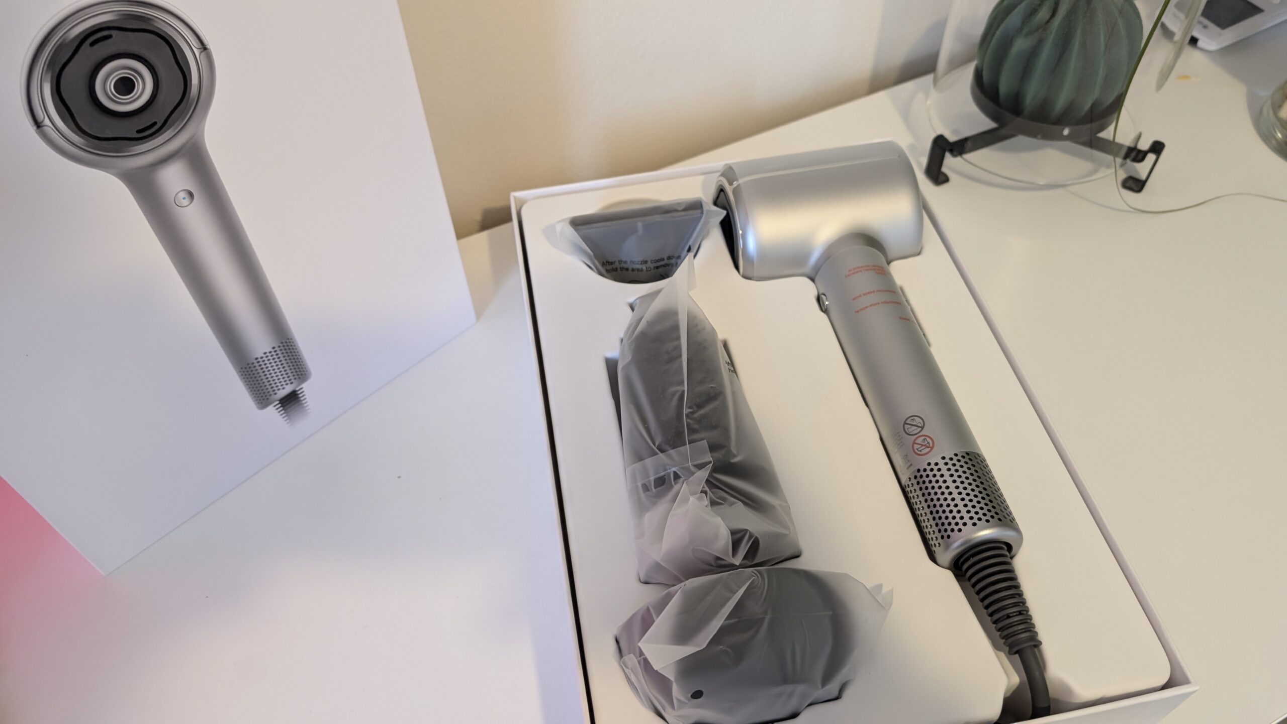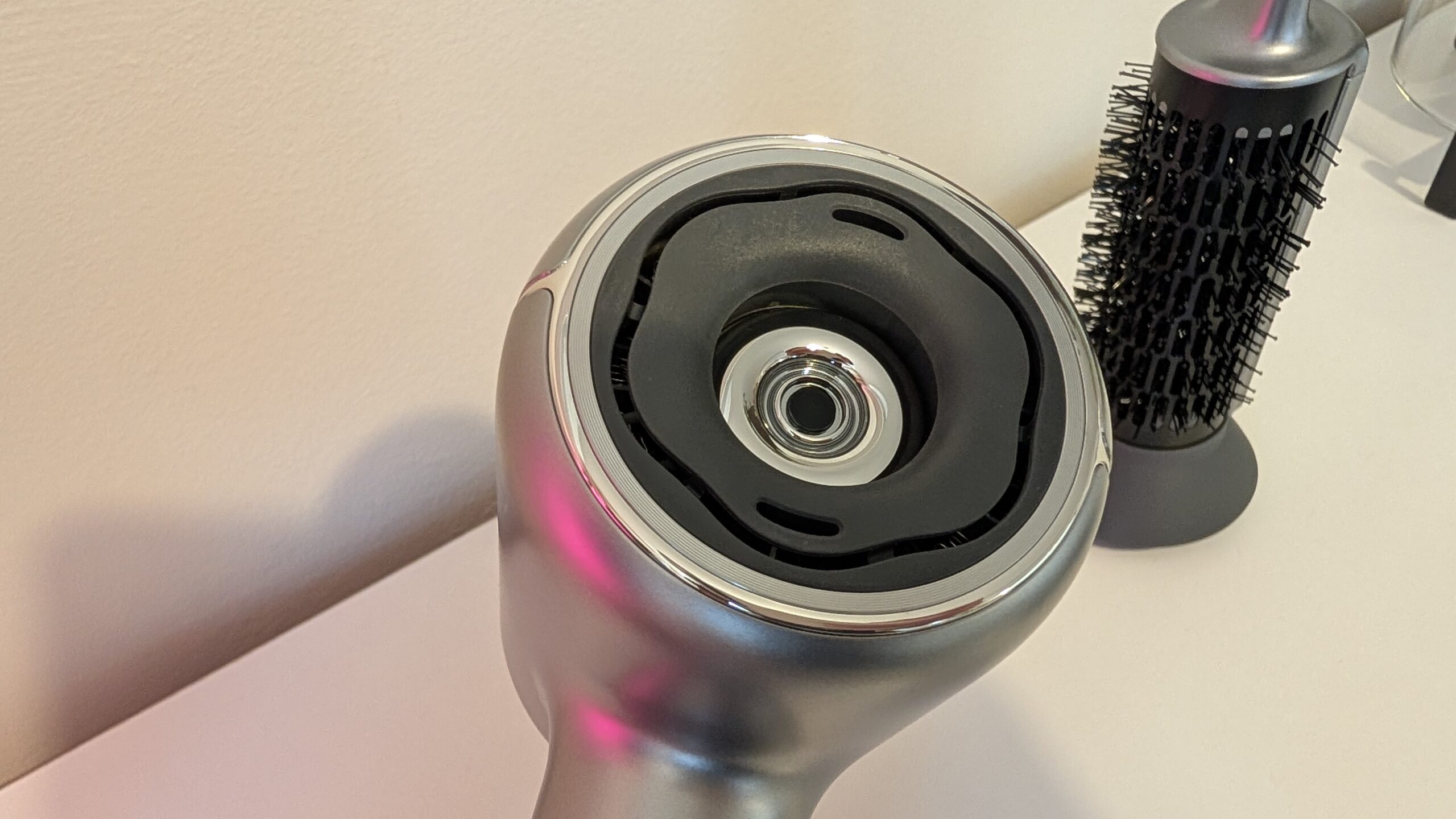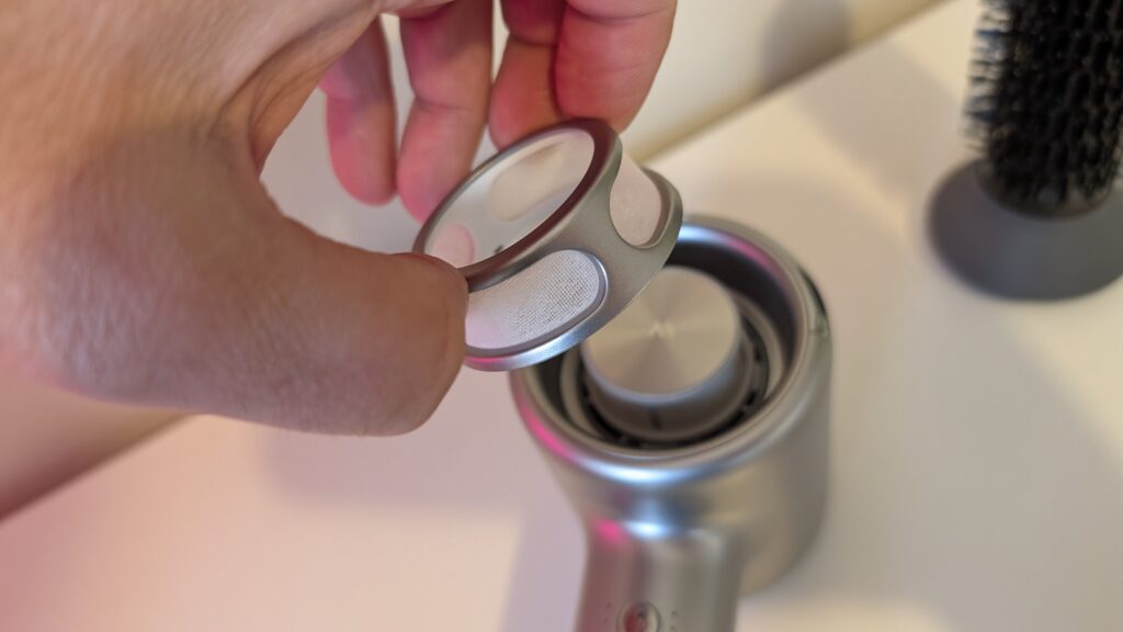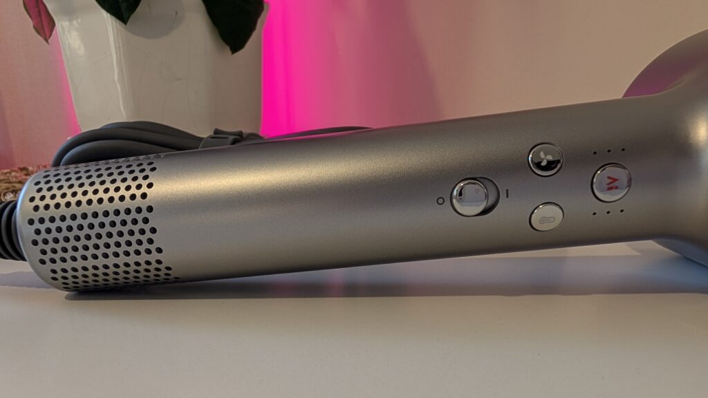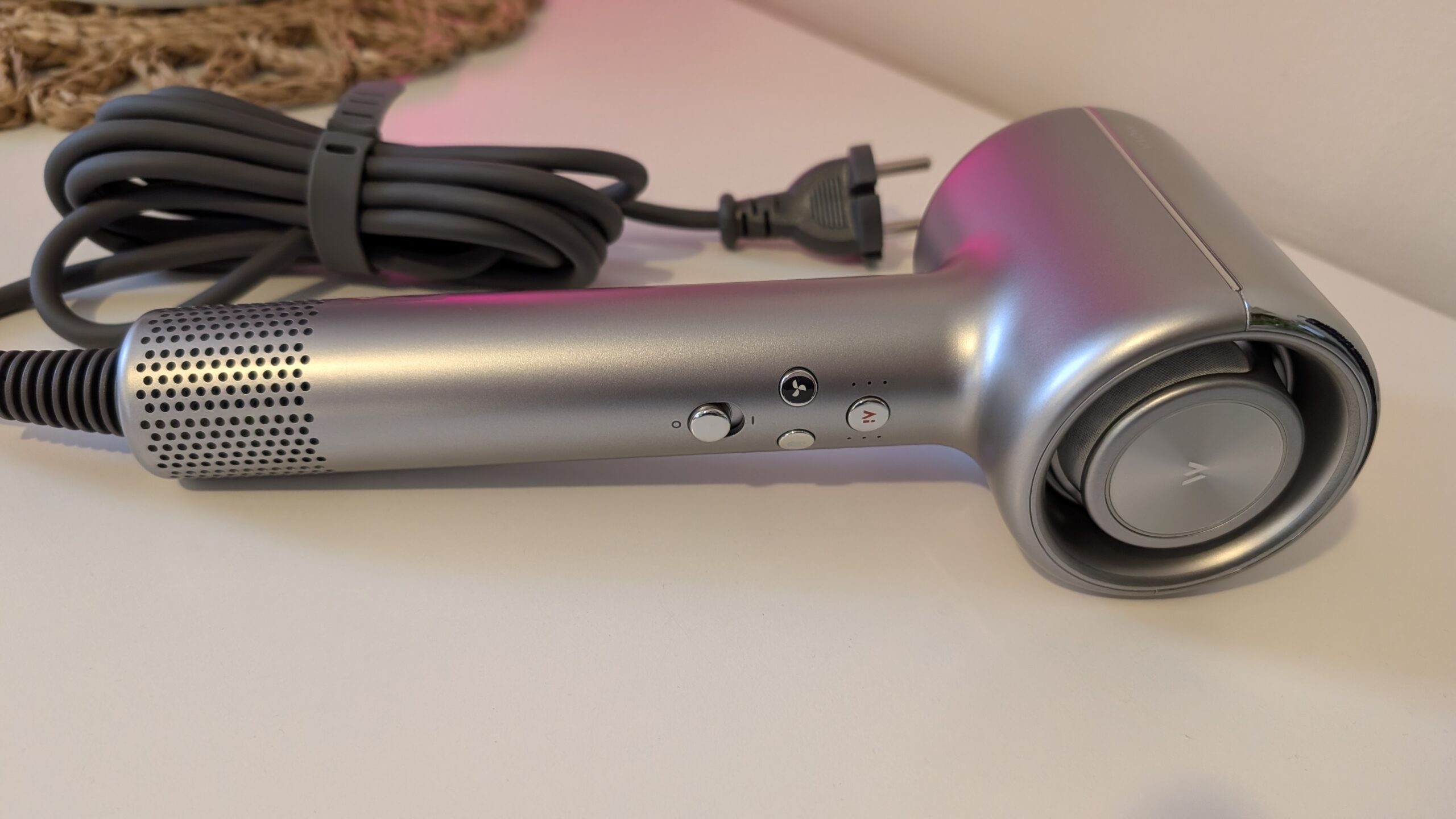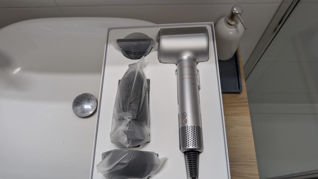 Zamiast analizy zdjęć w trybie nocnym, oceniamy tutaj jakość wyjściową fryzury w lustrze. Autorska technologia AeroBlossom rozprasza powietrze przez pierścieniowy wylot, minimalizując tak zwane „hot spoty” czyli miejscowe przegrzania struktury włosa, podczas gdy wbudowany moduł plazmowy emituje aż 300 milionów jonów dodatnich i ujemnych. Taka jonizacja redukuje ładunki elektrostatyczne, domyka łuski włosa i skutecznie zapobiega jego puszeniu się. Różnica w stosunku do zwykłej, marketowej suszarki jest widoczna od pierwszego użycia, przypominając przeskok z nagrywania w starym 720p na krystalicznie ostre 4K. Urządzenie ponadto potrafi rozpoznawać nałożone nasadki i odpowiednio dostosowywać do nich dynamikę nadmuchu. Więc jeśli założycie nakładkę dziecięcą, system sam obniży parametry do bezpiecznych, miękkich wartości.