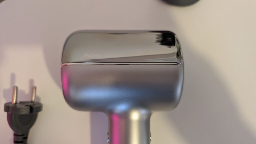 Pod maską kryje się bezszczotkowy silnik o prędkości 110 000 obrotów na minutę, który generuje potężny strumień powietrza o prędkości aż 65 m/s. Jednak to wbudowane sensory i inteligentne sterowanie stanowią tu przysłowiowy game changer, deklasując tanie odpowiedniki. MOVA zaimplementowała system ochrony oparty o dwa niezależne czujniki: dalmierz TOF (Time of Flight) – technologię doskonale znaną wam z aparatów w smartfonach, gdzie służy do mapowania głębi – tutaj na bieżąco mierzy odległość suszarki od waszej głowy. Z kolei precyzyjny termistor NTC bada temperaturę powietrza przy wylocie zatrważające 1000 razy na sekundę. Dzięki temu sprzęt automatycznie reguluje parametry, utrzymując na skórze głowy stałą i bezpieczną temperaturę 55°C. Oznacza to całkowite wyeliminowanie ryzyka oparzeń czy uszkodzeń bariery hydrolipidowej skóry. Sprzęt sam zdejmuje nogę z gazu, gdy przysuniecie go zbyt blisko włosów.