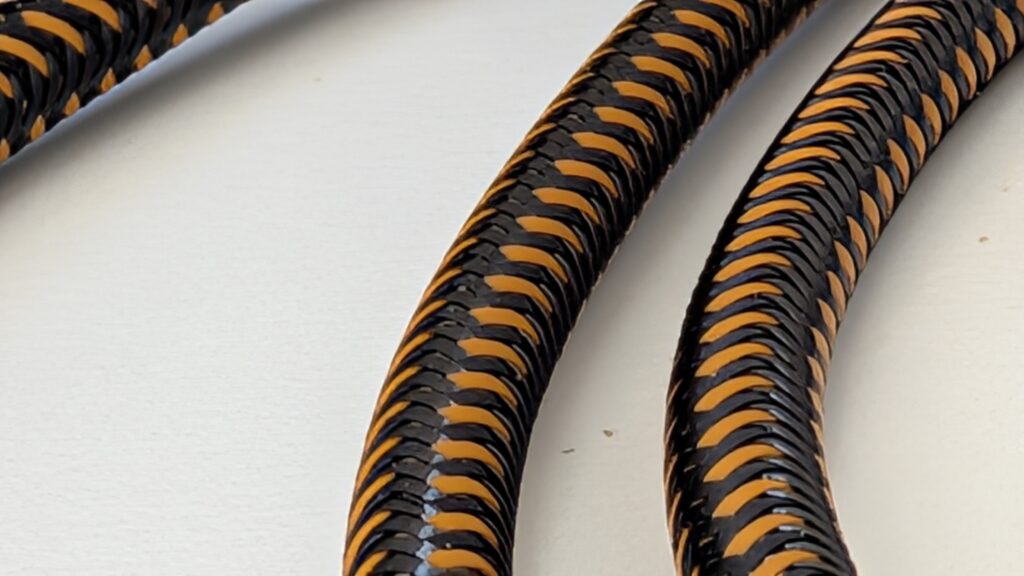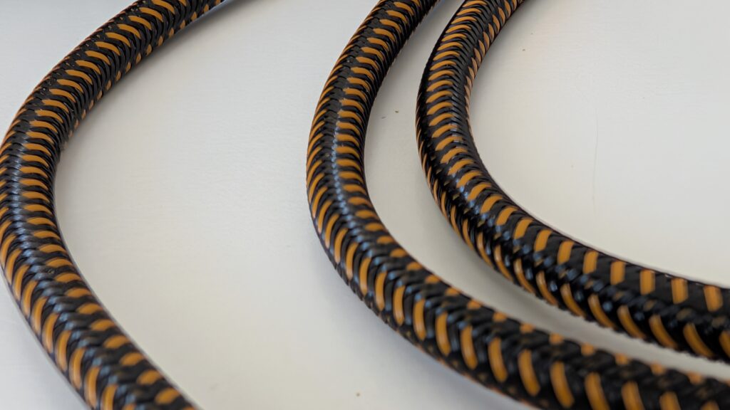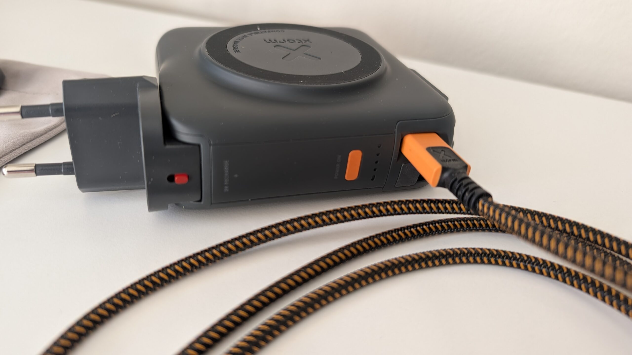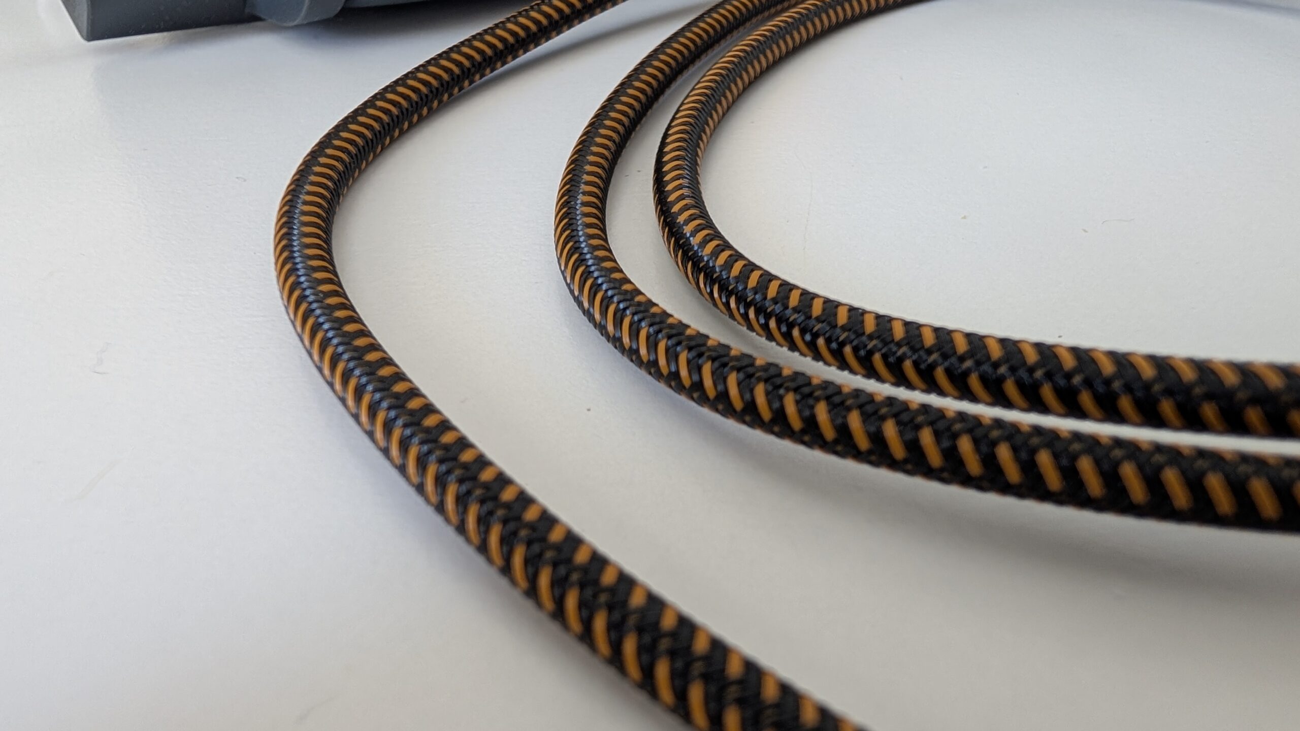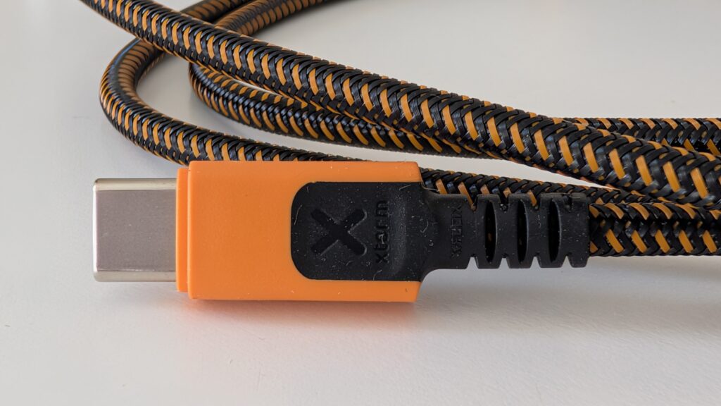 Design tego przewodu wyraźnie sugeruje, że można by na nim bezpiecznie zjechać z trzeciego piętra w razie pożaru, choć oczywiście producent tego nie zaleca. Oplot wykonany z gęsto plecionego nylonu jest szorstki w dotyku i niezwykle sztywny, co ma swoje dobre i złe strony. Z jednej strony kabel absolutnie się nie plącze, z drugiej zaś wykazuje sporą odporność na układanie, przez co na biurku potrafi żyć własnym życiem i przesuwać lżejsze akcesoria niczym stalowa lina. Wymiary samych końcówek są na tyle kompaktowe, że bez trudu mieszczą się w wycięciach większości etui na smartfony, co wcale nie jest oczywistością przy tak potężnej specyfikacji prądowej.