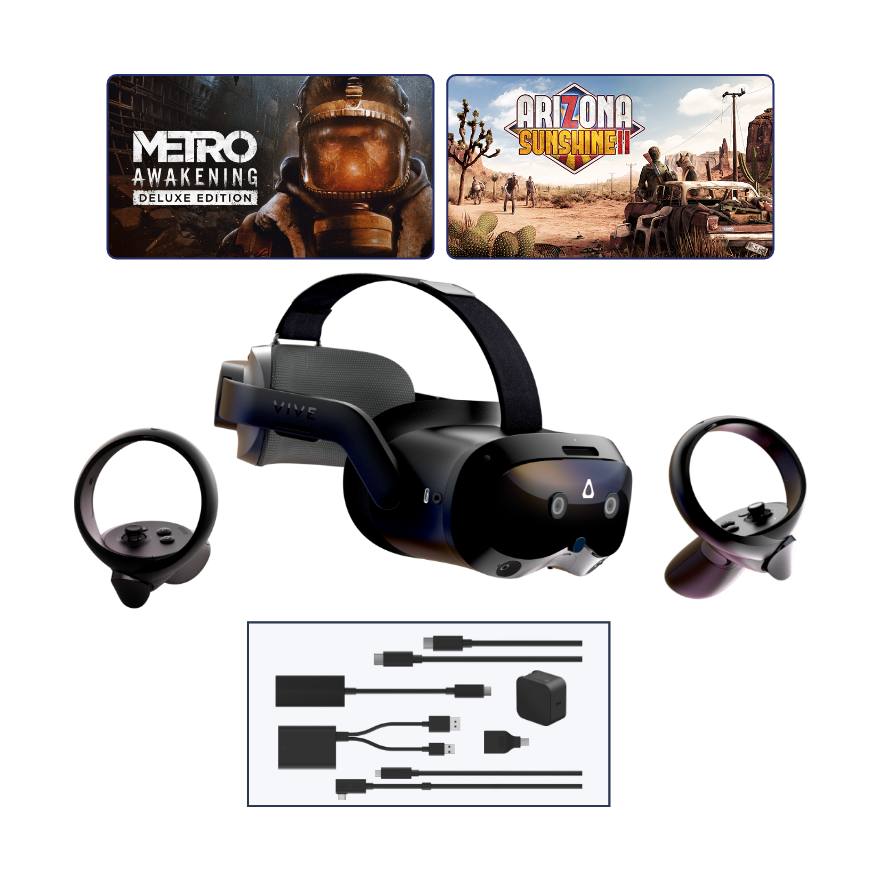 VIVE Focus Vision plus zestaw VIVE Streaming Kit i dwie gry PCVR – przy każdym zakupie najnowszego zestawu XR firmy HTC VIVE otrzymasz bezpłatnie zestaw VIVE Wired Streaming Kit oraz dwie pełne akcji gry PC VR (Metro Awakening i Arizona Sunshine)*. Lokalna sugerowana cena detaliczna VIVE Focus Vision 5299 zł.